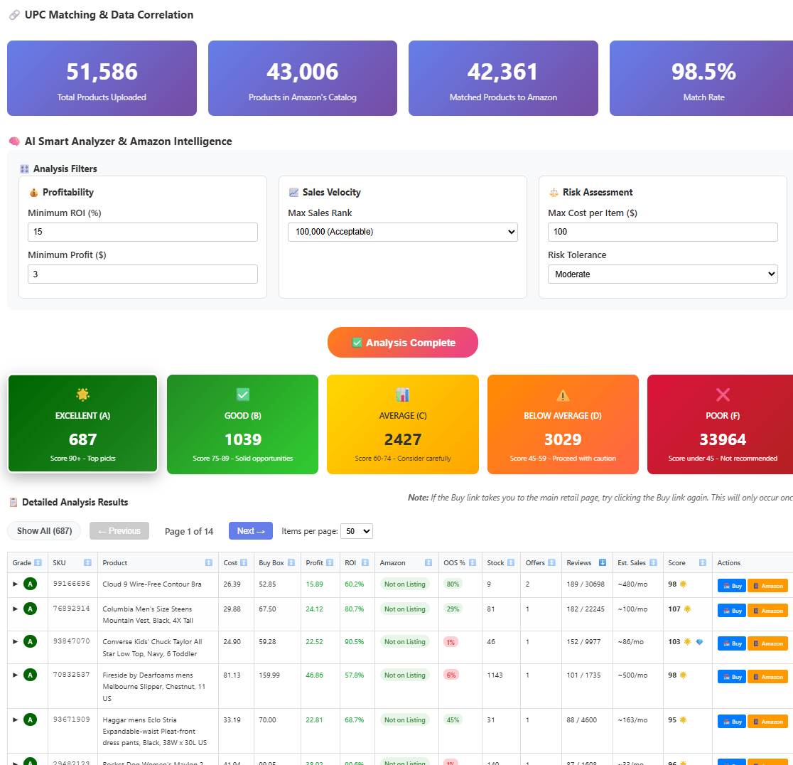 The game changer? Web scraping. Instead of scanning products one by one, I download thousands of products, match them to Amazon with 99% accuracy, and let AI rank the best opportunities. I can scan 1,000 products in 15 minutes and wake up to a spreadsheet of profitable finds.